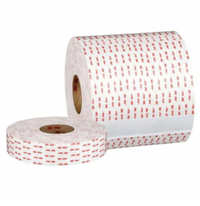3M™ VHB™ Tape 4950. It is a white, 1.1 mm, general purpose acrylic adhesive with a firm foam core. It can replace rivets, welds and screws. The fast and easy to use permanent bonding method provides high strength and long-term durability. It offers design flexibility with its viscoelasticity and powerful ability to bond to a variety of surfaces.
